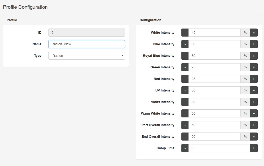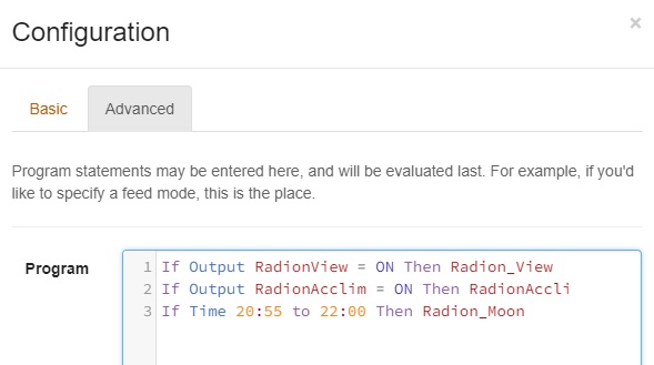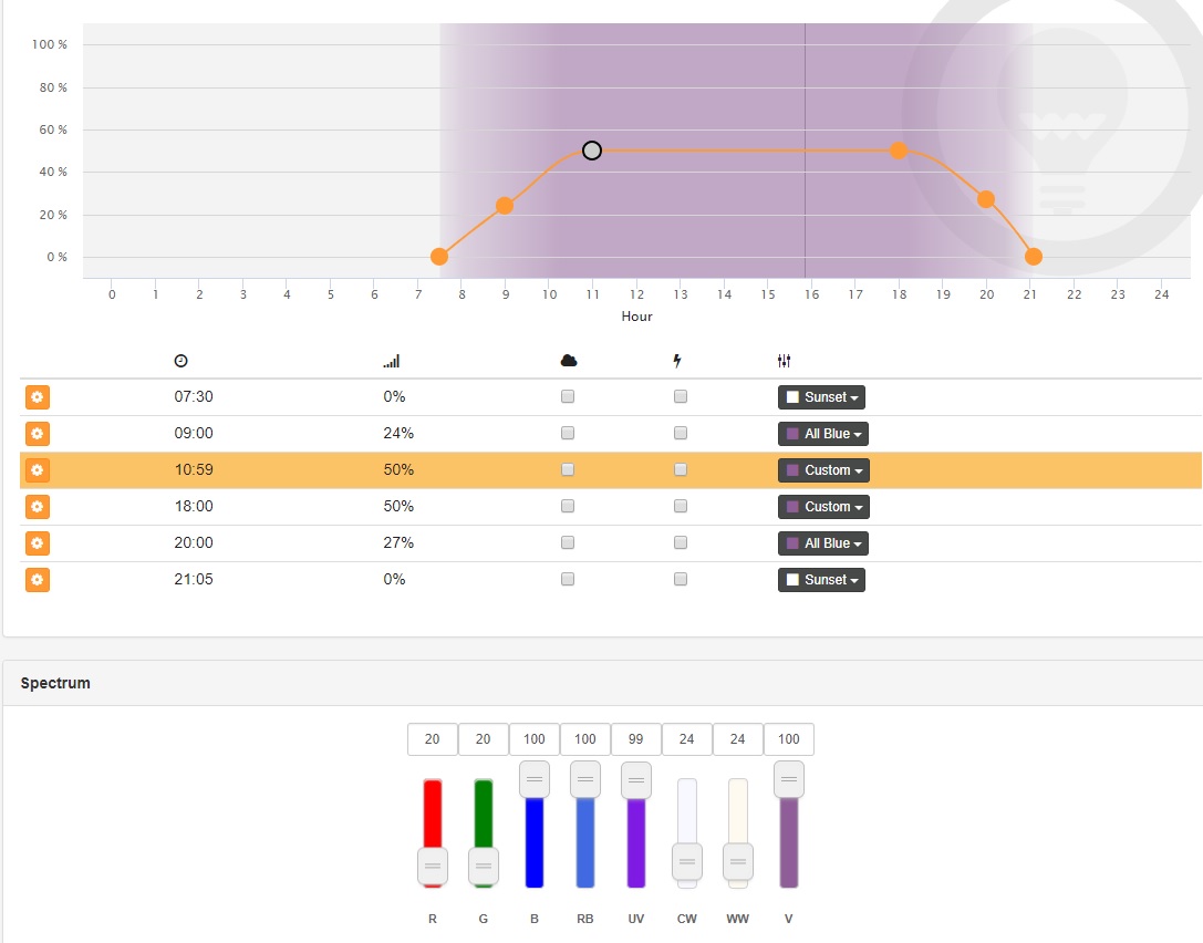 This profile is used when I want to record or take pictures of the tank. I setup a virtual outlet, when that outlet is turned on this profile is enabled.
